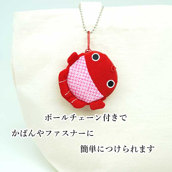 商品名金魚シリーズ 金魚のコインケース2商品についてまるで水の中を泳いでいるかのような、愛らしい金魚のコインケースです。ちりめん素材のやさしい風合いと、鮮やかな色合いが目を引くデザイン。小銭はもちろん、アクセサリーやお守りなど小さな宝物を入れても◎。手のひらサイズでバッグの中でもかさばらず、取り出すたびにほっこり気分。お祭り気分をそっと持ち歩けるような、遊び心あふれる和小物です。ご自身用にはもちろん、ちょっとした贈り物や海外の方への和風ギフトにもぴったりです。■サイズ縦:6cm横幅:6cmマチ:1.5cm■素材レーヨンちりめん綿(裏地)スチール(ボールチェーン)ご注意※商品によって柄の出方や表情等が異なる場合がございます。※レーヨンちりめんは濡れると縮みます。水気にご注意ください。※小さなパーツを誤ってお子様が飲み込まないようにご注意ください。※お客様のモニター環境によっては実物と異なって見える場合もございます。キーワードコインケース 金魚 かわいい [金魚シリーズ 金魚のコインケース2] 金魚 夏 小銭入れ 縮緬 マチ付き 可愛い プレゼント