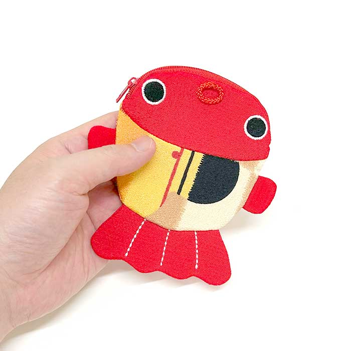 商品名金魚のポーチ 金魚シリーズ商品について金魚のかわいいポーチ。ころんと愛らしい金魚のかたちをした、ちりめん素材のポーチです。まるで水の中を泳いでいるかのような尾びれの揺れが、持っているだけで気分をふわりと涼しくしてくれます。リップやアクセサリー、ちょっとした小物入れにぴったりのサイズ感。バッグの中に入れておくだけで、和の風情と遊び心を添えてくれる、見て楽しい?使って嬉しいアイテムです。お祭り気分のおすそ分けや、和小物好きな方へのギフトにもおすすめ。 6柄よりお選びください。■サイズ縦(全長):約14cm縦(ポーチ部分):約11cm横幅(ポーチ部分):約10cmマチ:約1cm■素材 レーヨンちりめん 綿(裏地)ご注意※商品によって柄の出方や表情等が異なる場合がございます。※レーヨンちりめんは濡れると縮みます。水気にご注意ください。※お客様のモニター環境によっては実物と異なって見える場合もございます。あらかじめご了承下さい。キーワードポーチ 小物入れ 可愛い [金魚のポーチ 金魚シリーズ] 夏 ファスナー 小物入れ 整理 収納 可愛い 贈り物 キャラクター 手作り ハンドメイド 縁起物 金運 マチ付き 季節 四季 ちりめん細工 手作り ハンドメイド 和雑貨 小学生 幼稚園児 保育園児 プレゼント プチギフト